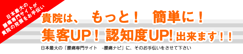 「現状維持は即、脱落なり」 日本最大の「腰痛専門サイト」、「腰痛ナビ」に、そのお手伝いをさせて下さい!